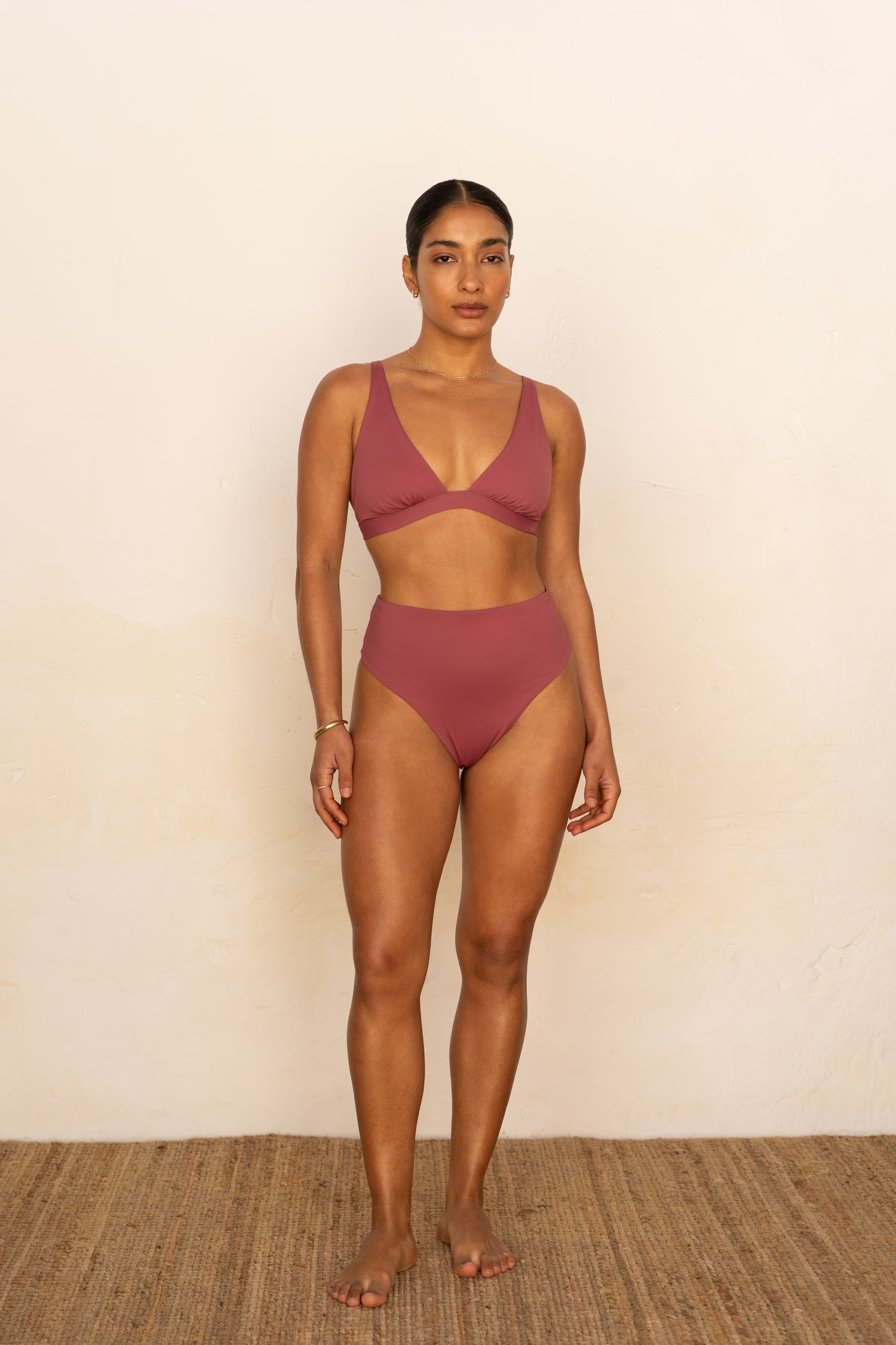 Fabriqué à Casablanca à partir de tissu français, le haut Iris est doublé dans la même matière. Veillez à bien le rincer à l'eau claire après chaque utilisation et à le faire sécher à plat et à l'ombre pour le préserver.