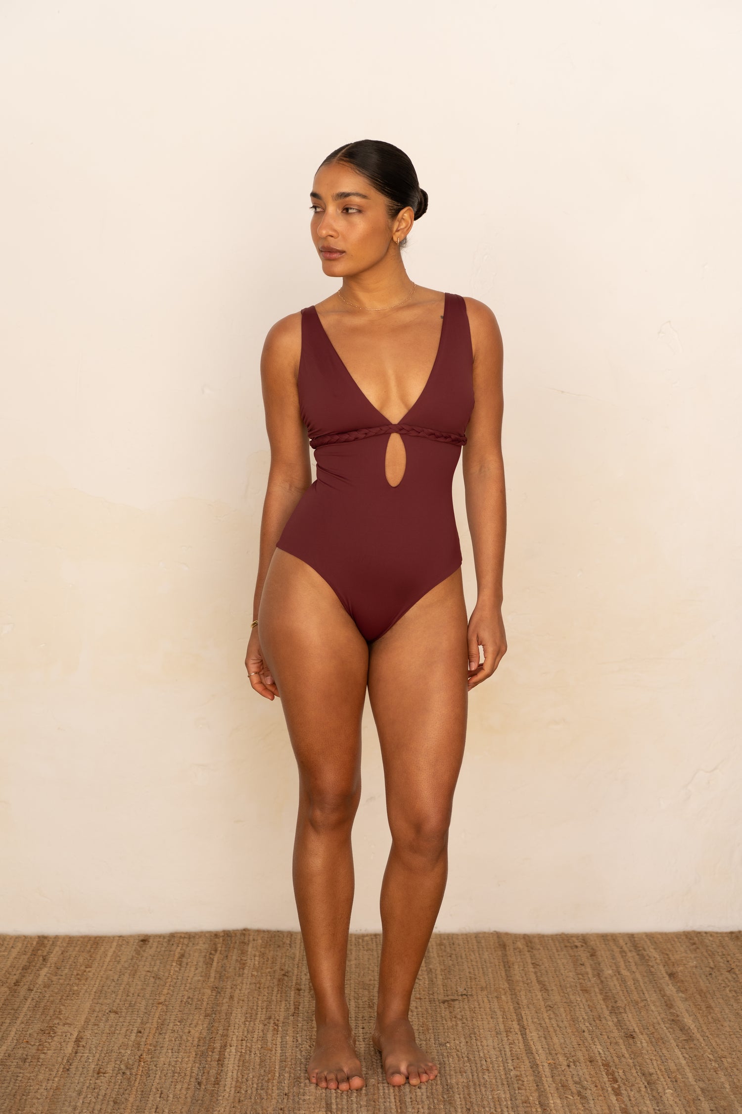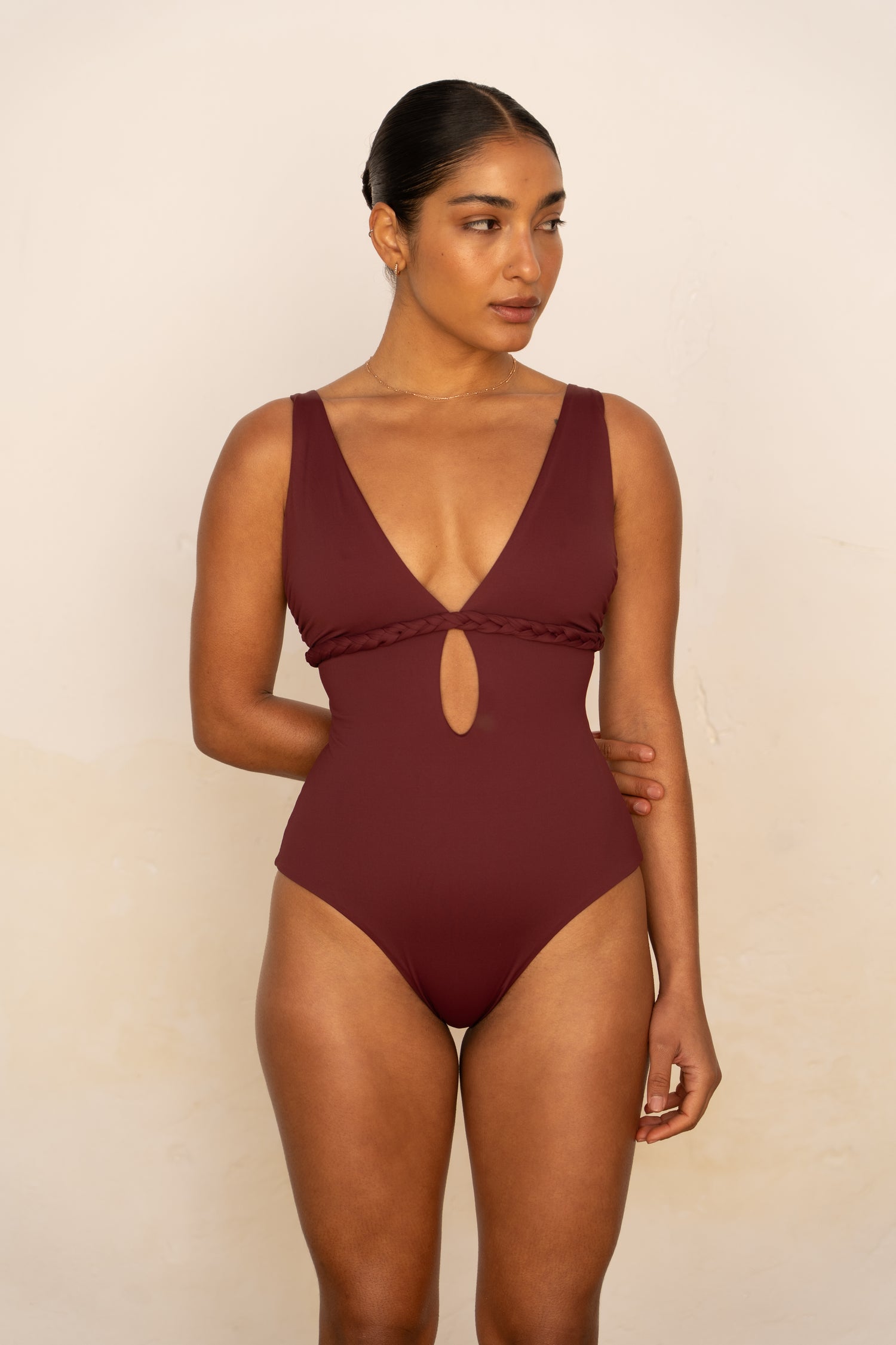 Le une Pièce Amélia reprend les codes Khaven : une forme élégante et un détail fort. Grâce à son détail tressé sous la poitrine, Amélia sublime toutes les poitrines et épouse les courbes.