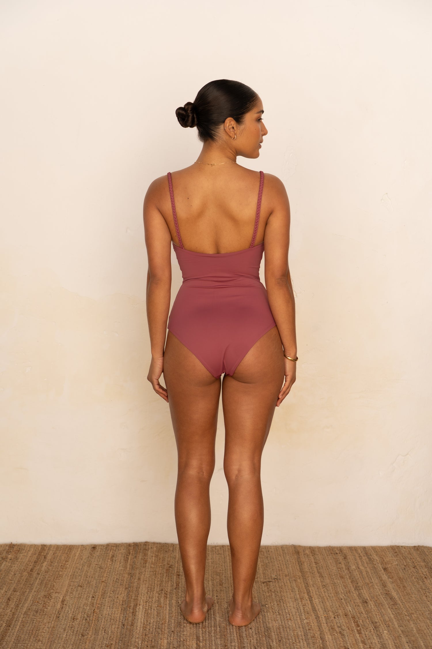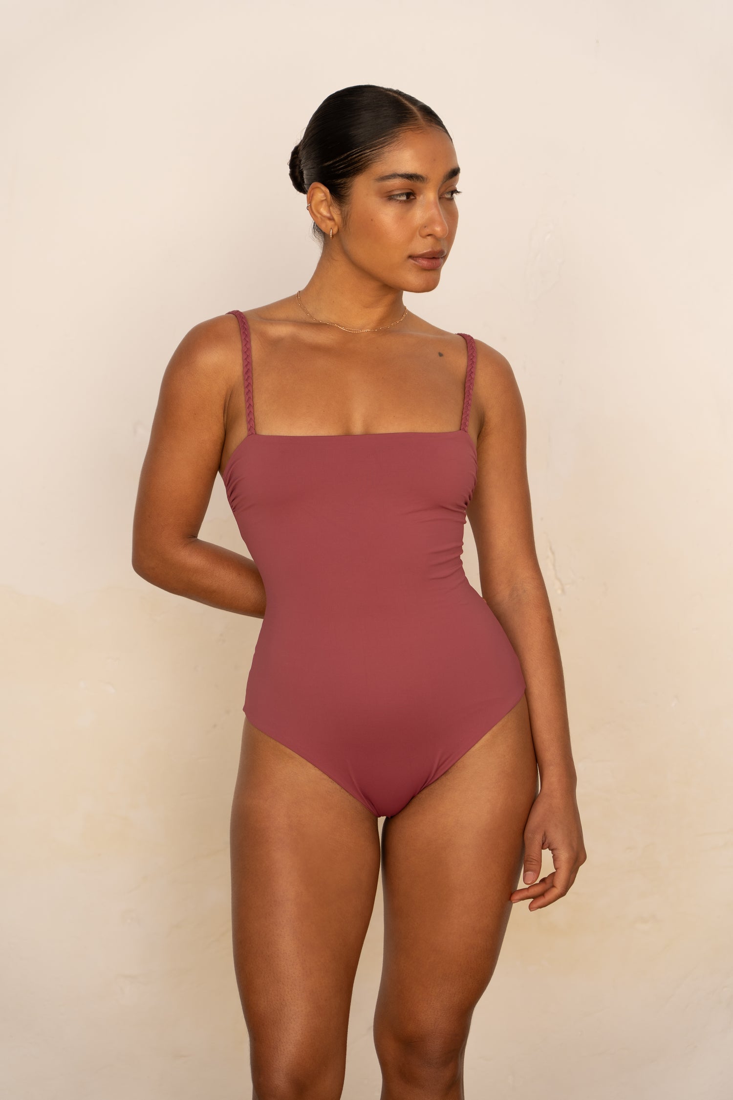 Le une Pièce Hannah reprend les codes Khaven : une forme élégante et un détail fort de la Maison. Grâce à ses bretelles finement tressées et son décolleté romantique, Hannah sublime toutes les poitrines et épouse parfaitement les courbes.