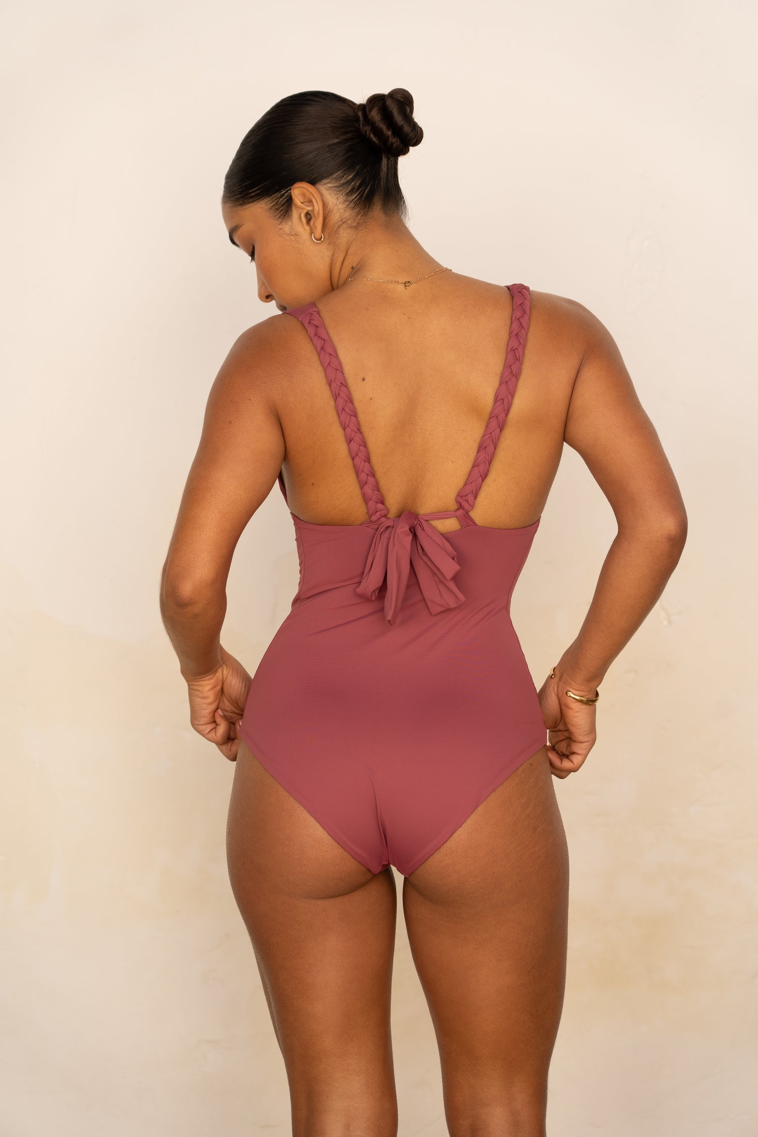 Une pièce triangle à bandes larges et bretelles tressées sur le dos. La fermeture en noeud permet d'ajuster le modèle. Le modèle est doublé dans la même matière, assurant opacité, confort et longévité à votre maillot de bain.